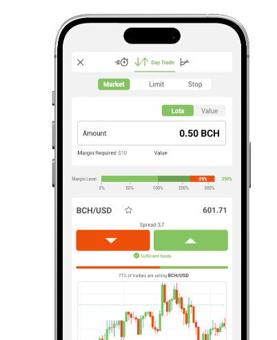 Gdy handlujesz BCH w aplikacji easyMarkets lub na platformie internetowej, transakcje są natychmiastowe.